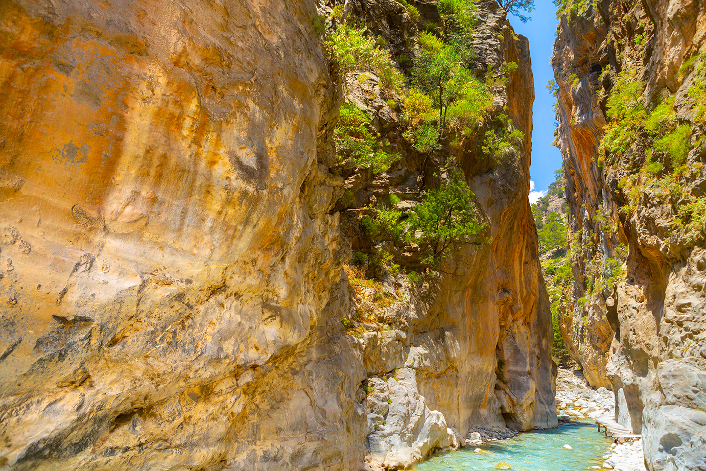 The gorge of Imbros, situated in south crete near Chora Sfakia and Frangokastello, stands as the second most frequented gorge in Crete, following Samaria. In peak season, numerous hikers embark on the daily trek through this valley. The journey, lasting 2-3 hours, is not overly demanding, offering stunning scenery. Its moderate difficulty level makes it a perfect excursion for families with children.